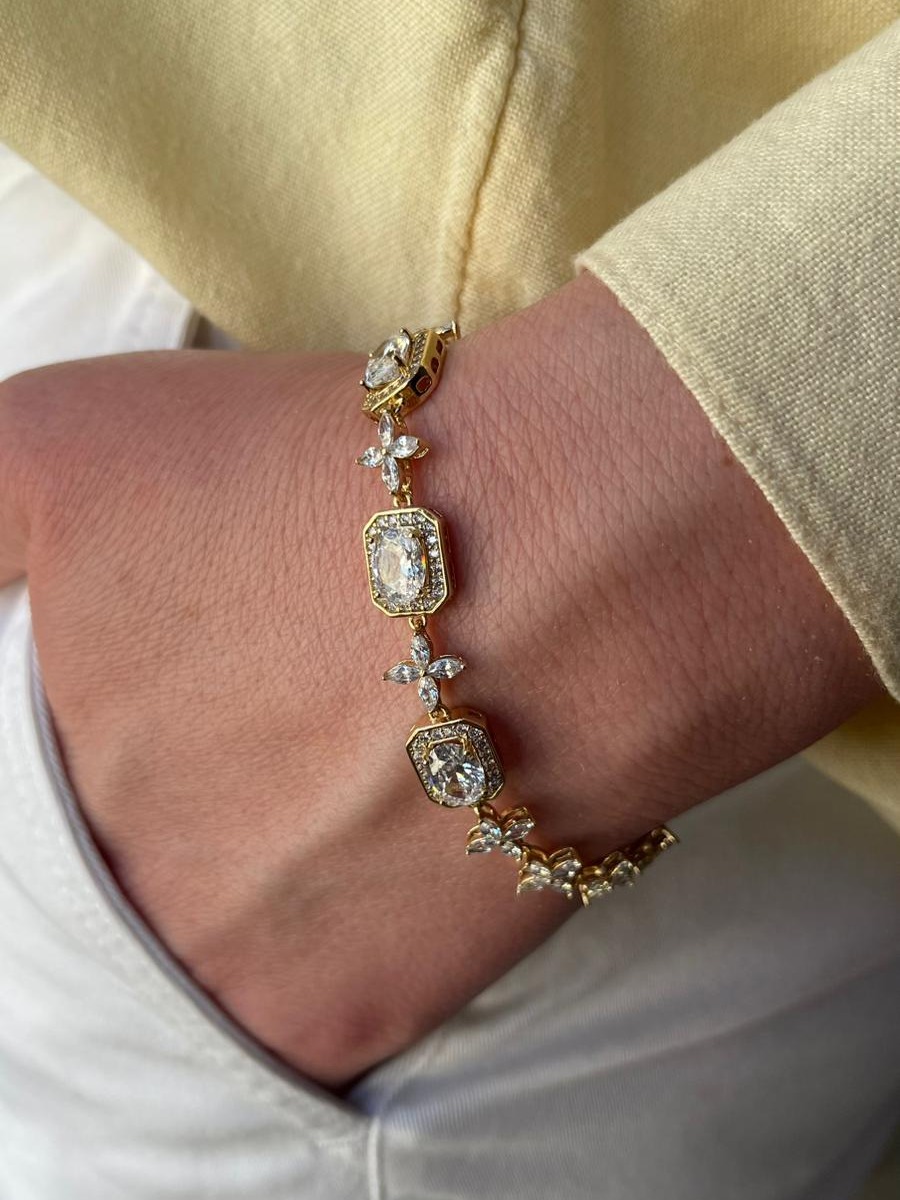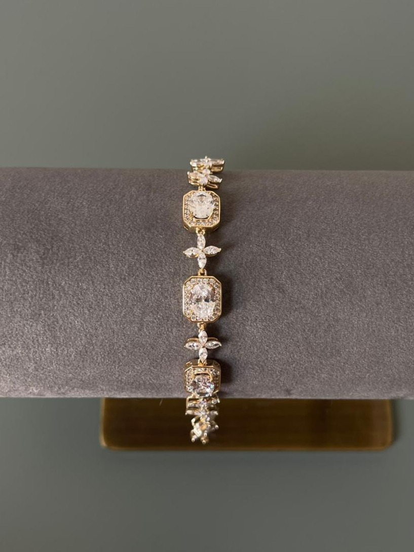 Çiçek Detaylı Taşlı Bileklik – 14 Ayar Altın İşçilikli Çelik