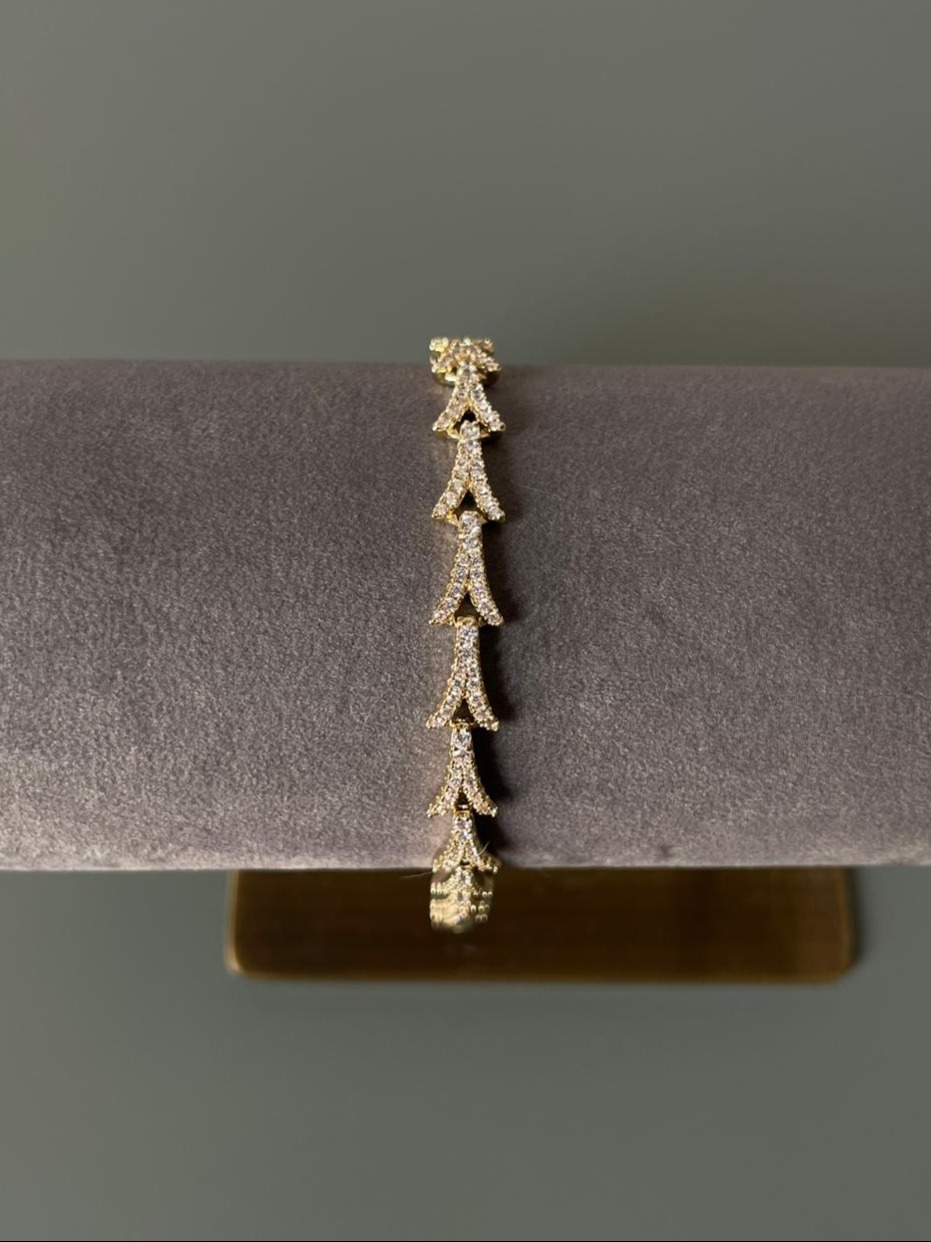 Taşlı Yaprak Bileklik – Altın Renk Çelik