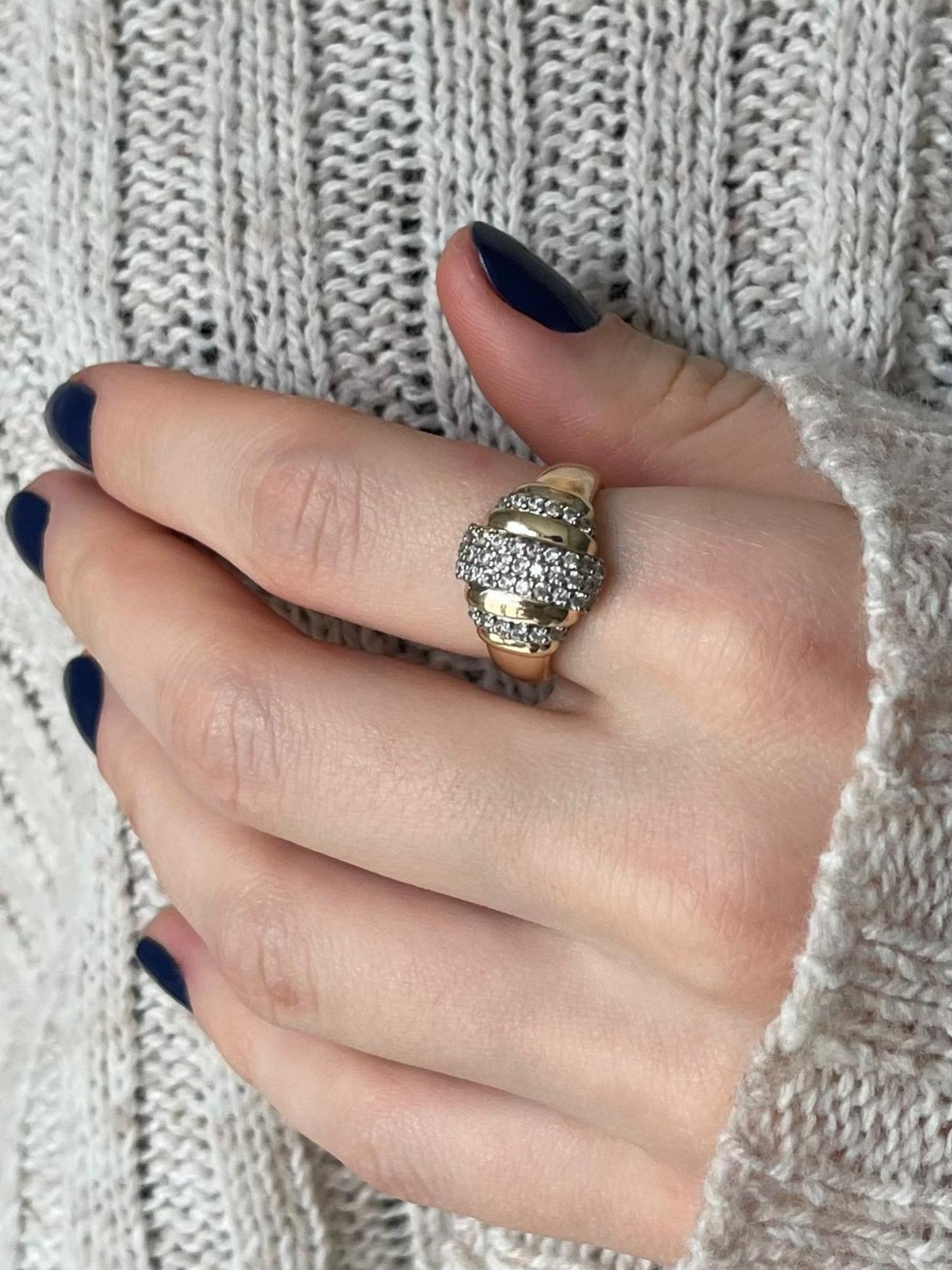 Üç Sıra Taşlı Kalın Kruvasan Yüzük