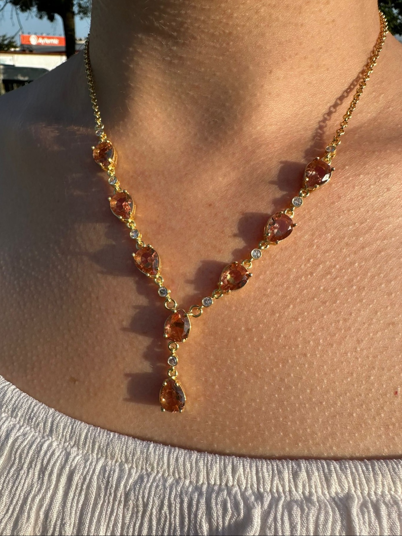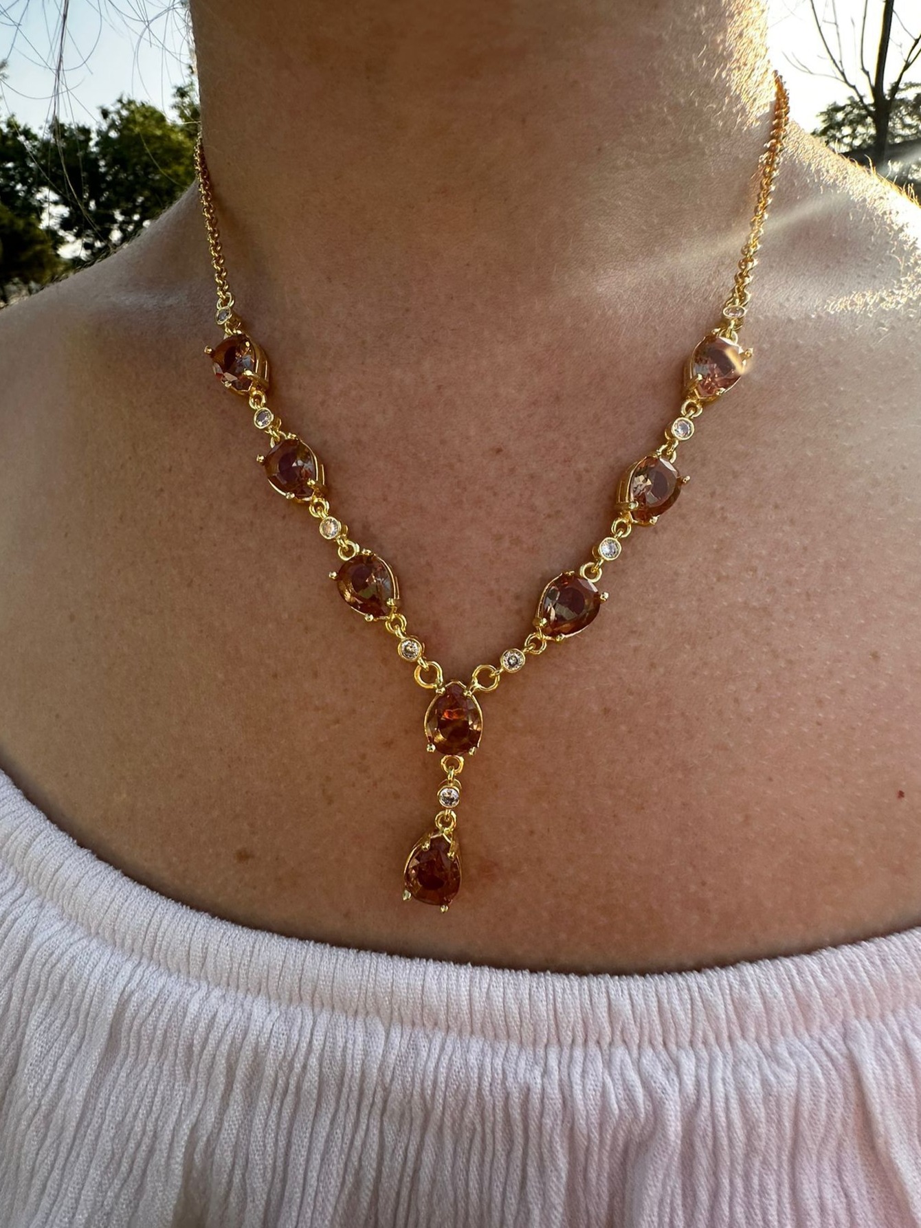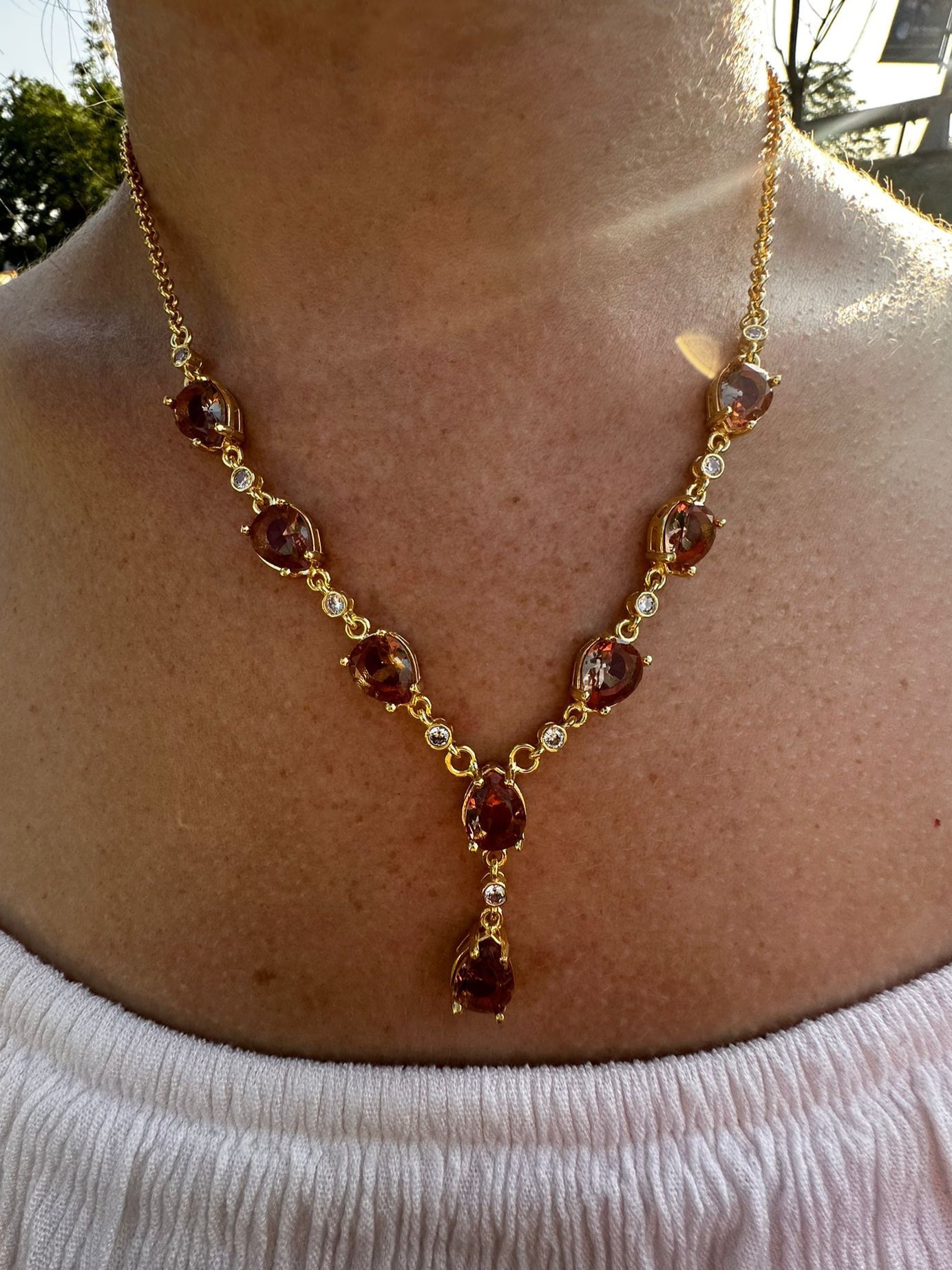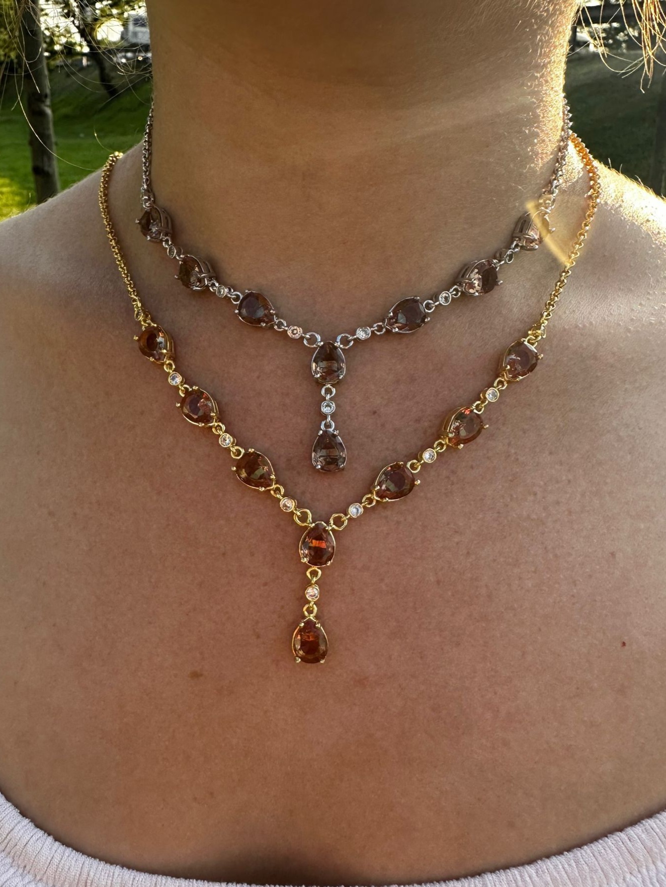 Zultanit Taş İşlemeli Altın Renk Gümüş Kolye